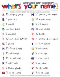 Free interactive exercises to practice online or download as pdf to print. We introduce the best ones One of our girls found this alphabet workout online so we have been having fun with it in class! Alphabet may refer to any of the following: See more ideas about workout, alphabet workout, spell your name workout.